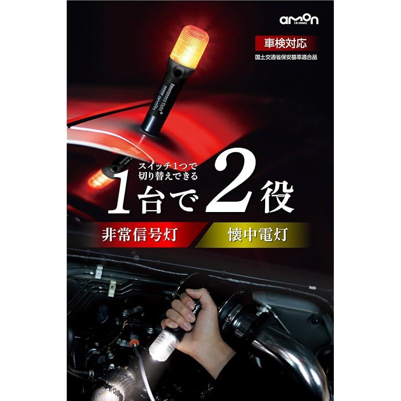 エーモン(amon) 非常信号灯 懐中電灯機能付 発炎筒の代わりに 車検対応 (防滴仕様IPX3相当) ON/OFFスイッチタイプ 土屋圭市氏推奨 6906 黒 0