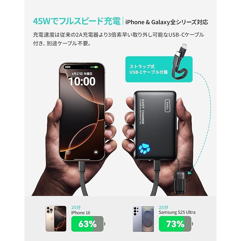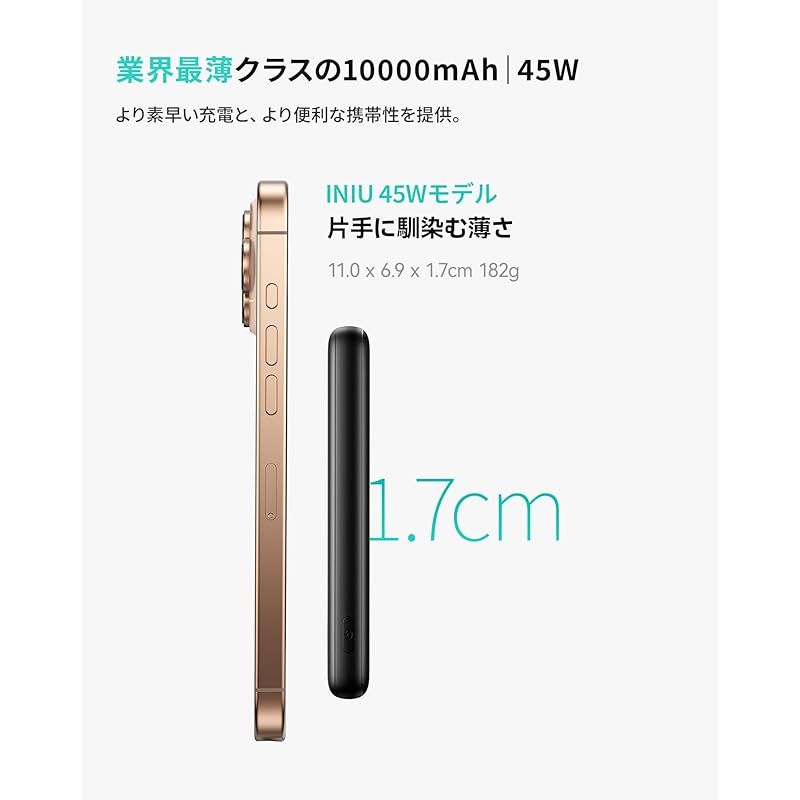 INIU 45W 超軽量 小型 モバイルバッテリー 急速充電 USB-C USB-A 10000mAh 3台同時充電 PSE技術基準適合 大容量 安全設計&多種保護 携帯充電器 薄型 旅行/出張/停電対策/アウトドア/災害/緊急用の便利グッズ iPhone 1
