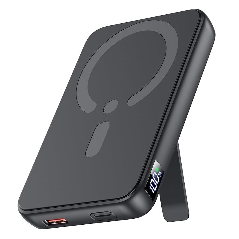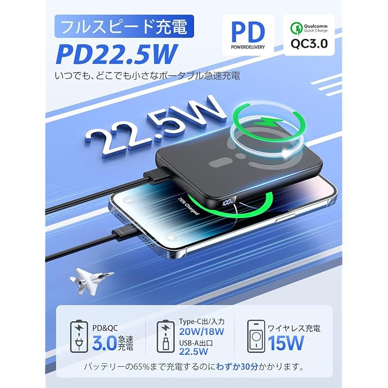 【12000mAh大容量・360°回転スタンド付き・3台同時充電可能】 軽量 大容量 小型 最大22.5W急速充電 ワイヤレス充電器 マグセーフ マグネット式 USB-A出力ポート/Type-C出入力ポート LCD残量表示 コンパクト PSE安全認証済み iPhone 17/16/15/14/13シリーズ 旅行/出張/災害用 機内持ち込み可 プレゼント