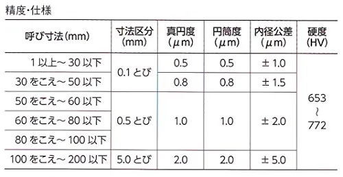 内径公差(μm) : ±1.5