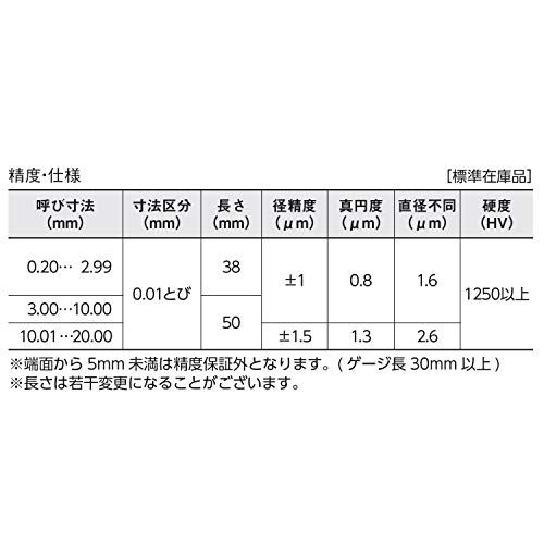 1.50mm以上は、ピンゲージに呼び寸法をレーザーマーキングしてあります。