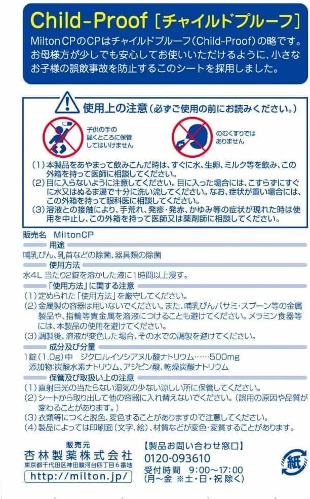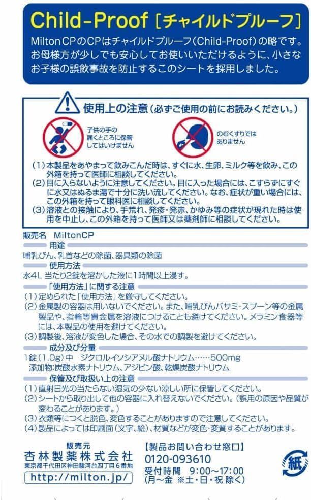 ミルトン MiltonCP チャイルドプルーフ 杏林製薬 哺乳瓶 搾乳器用 洗浄剤 60錠×3セット