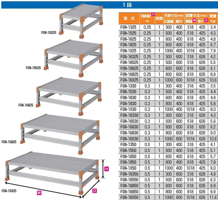新品 ピカ(PiCa) 作業用踏み台 Danchiシリーズ FGN 1段 H250×W500×D425 踏み面標準タイプ 滑り止め付き 作業台 現場 倉庫 工場 仮設 FGN-1525
