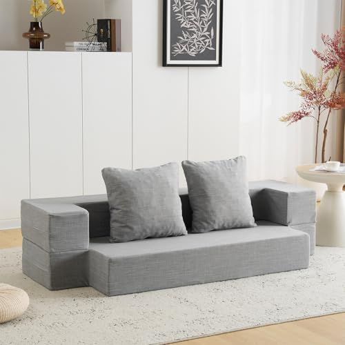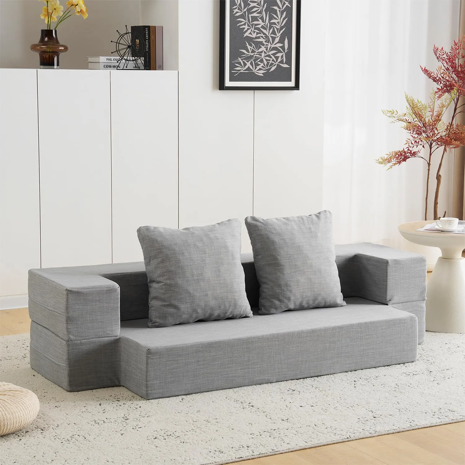 2人掛けソファーベッド 組立て不要 フロアソファー ローソファー 2人掛け コンパクト 軽量 圧縮梱包 高反発ウレタン クッション付き 1人暮らし向け 完成品ソファ (グレー)n