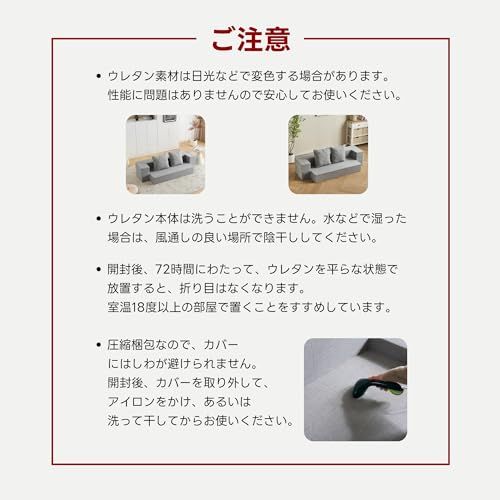 【圧縮梱包で便利】この二人掛けソファーベッドは、圧縮梱包でコンパクトにお届けします。狭い玄関や廊下でも搬入しやすく、重量は約11kgと軽量で女性一人でも持ち運び可能。完成品で届くため組立て不要、時間を節約できすぐにご使用いただけます。