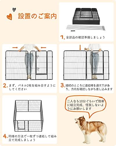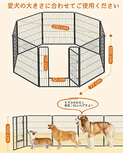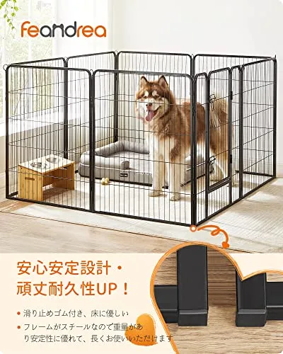 FEANDREA 犬 サークル 中大型犬用 ペットフェンス スチール製 全成長期使用可 室内外兼用 折り畳み式 組立簡単 ペットサークル パネル8枚 複数連結可能 犬 ゲージ PPK81H 高さ100cmn