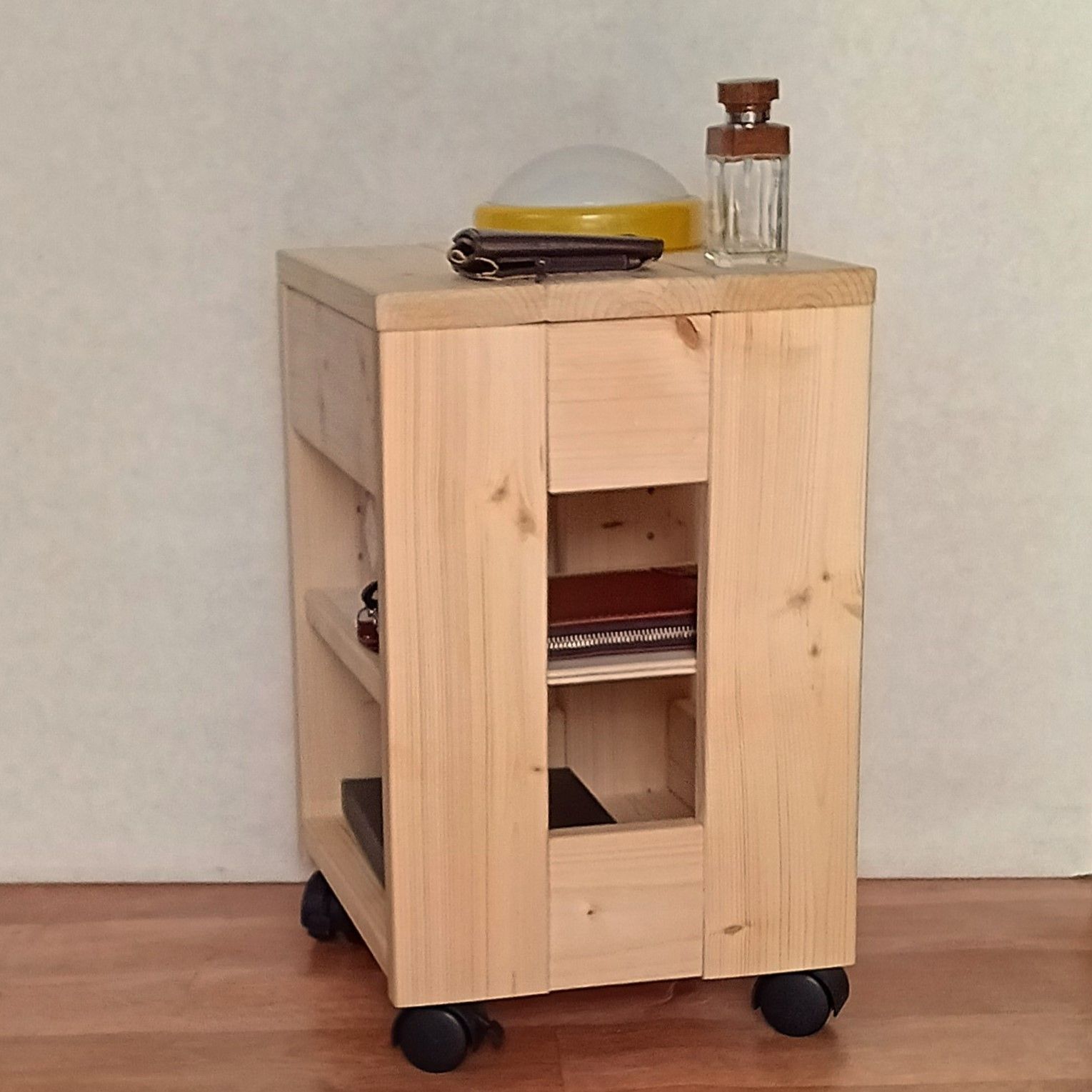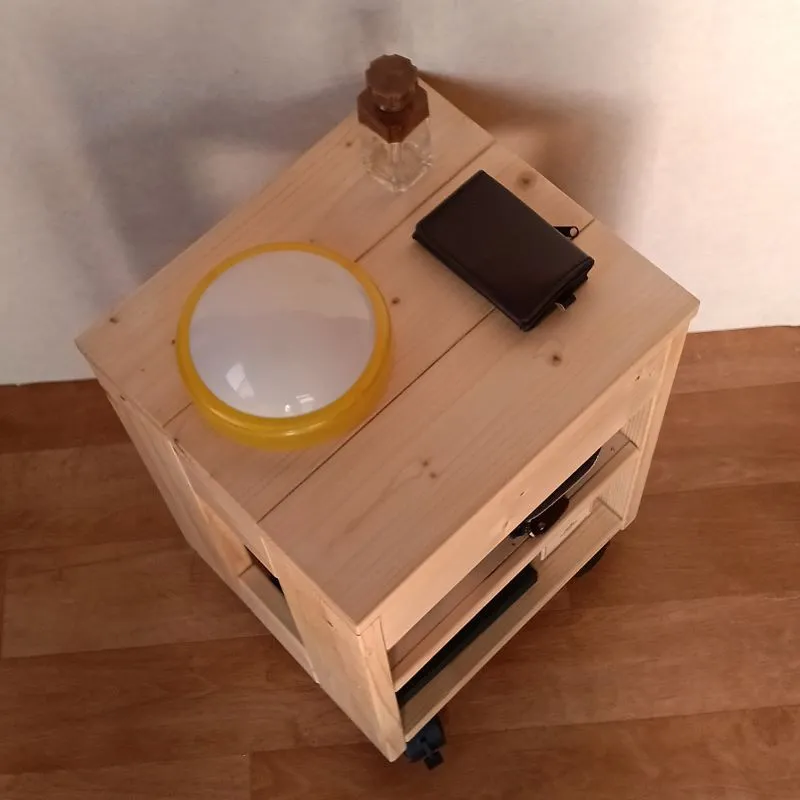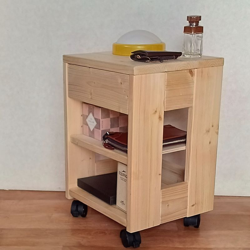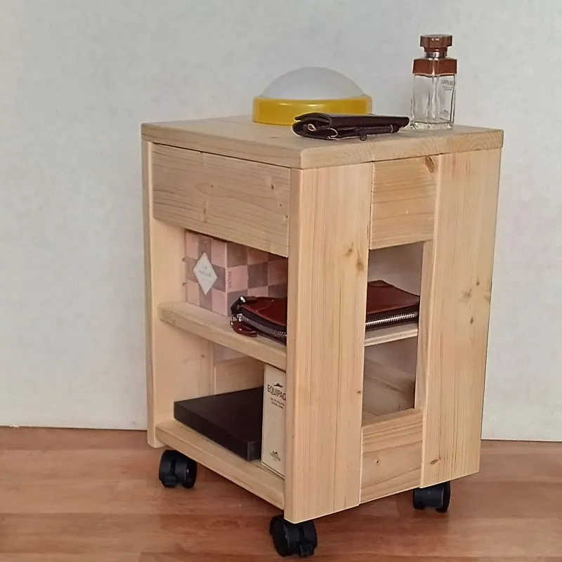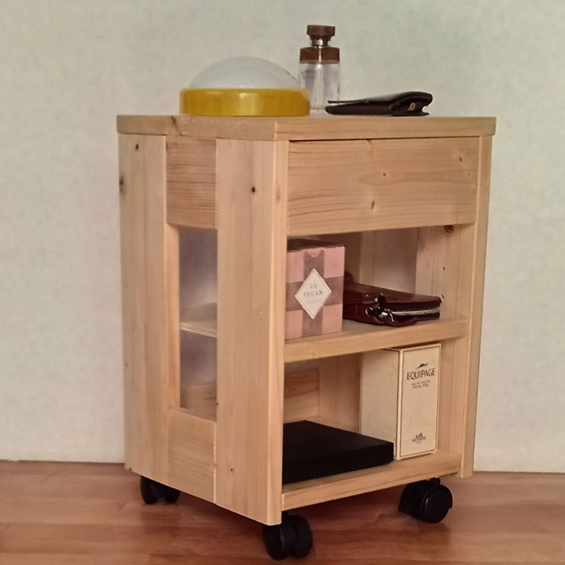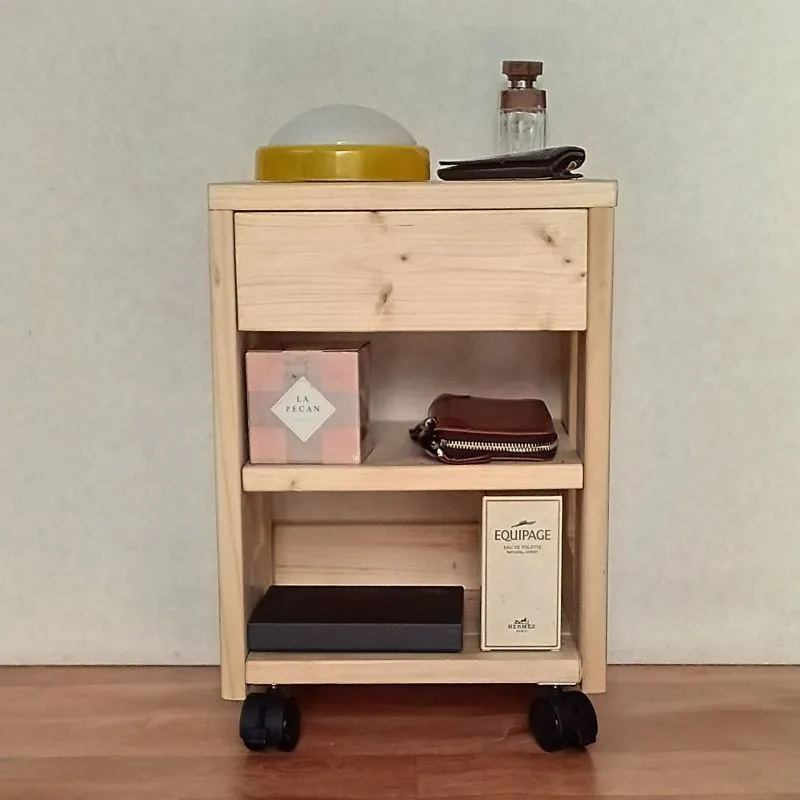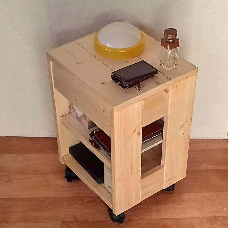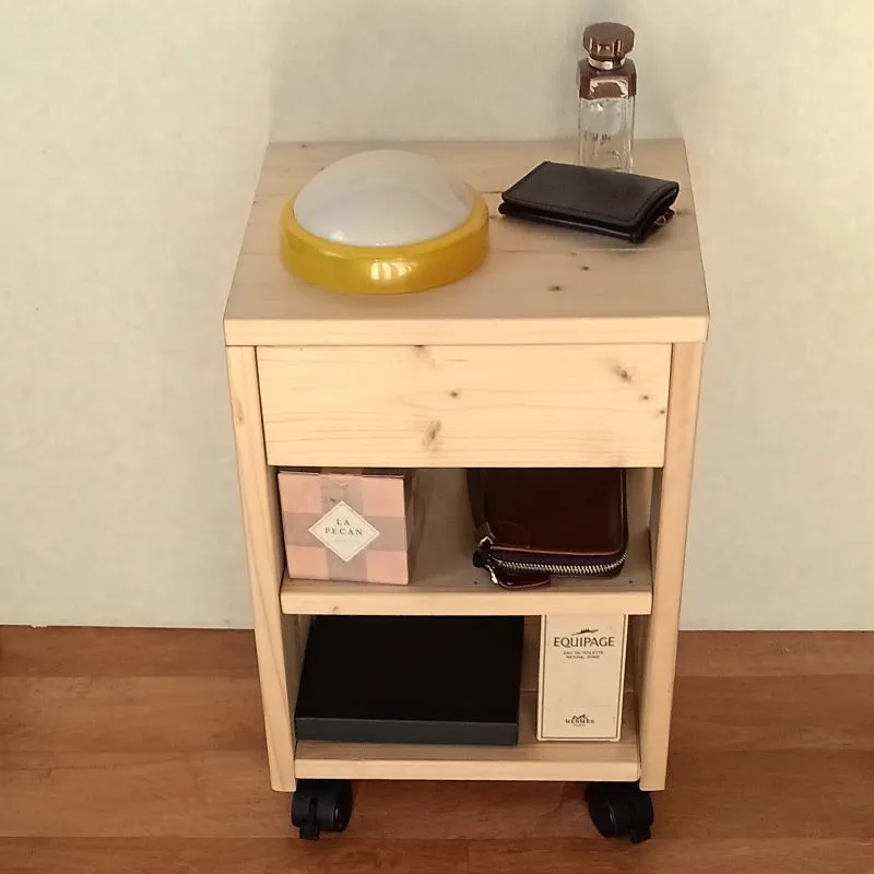 新築のわくわく感をキャスター、棚付きのナイトテーブルでお楽しみください。