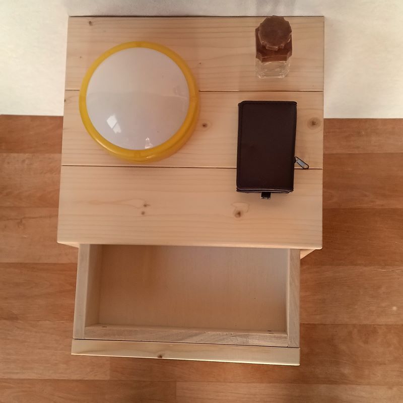 汚れや手垢がつきにくくするために安全安心な蜜蝋ワックスでコーテイング仕上げをしてしてあります。素材はSPF無垢材です。