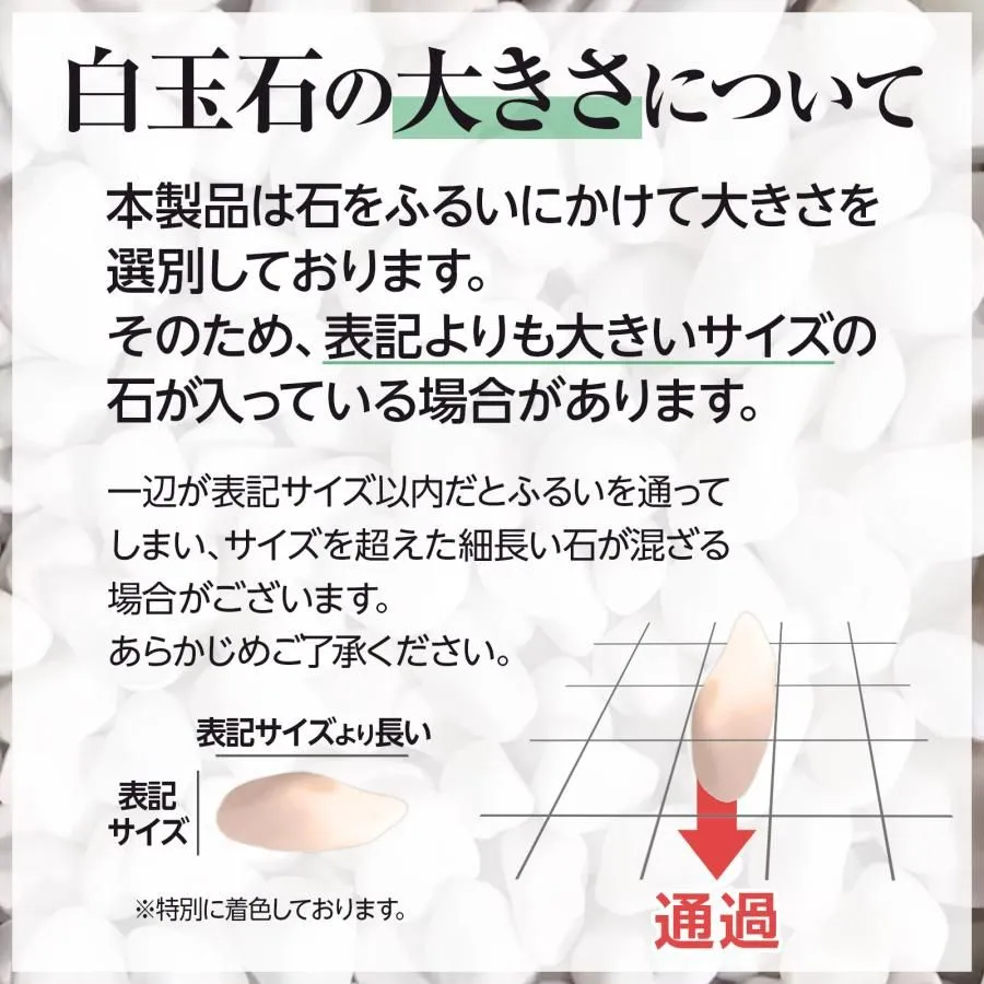 【美しい白色が特徴の白玉石】 天然の白玉石を磨き上げた、上品で美しい丸石。濡れるとさらに輝きを増す特徴が魅力です。