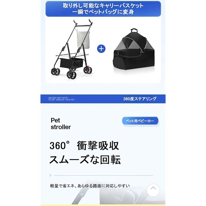 ペットカート 分離型 ペットバギー ワンタッチ折りたたみ 犬 バギー 犬 4輪耐摩耗 猫 犬用 小型犬 前輪360°後輪ブレーキ付 軽量犬用ベビーカー ペットカート 多頭 取り外し可能 ブラック 1