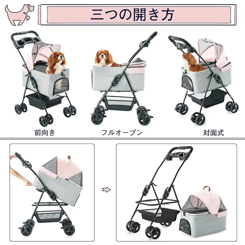 LPOTIUS ペットカート 折りたたみ 2Way 分離型 軽量 多機能 小型犬 中型犬 猫犬兼用 ペットキャリー 4輪360°回転 取り外し可能 ペットバギー 組み立て簡単 お出かけ 介護用 旅行 犬用 バギー カート 耐荷重15KG ペット用ベビーカー 1
