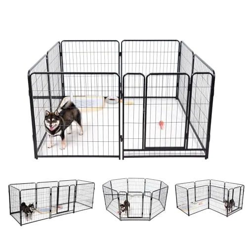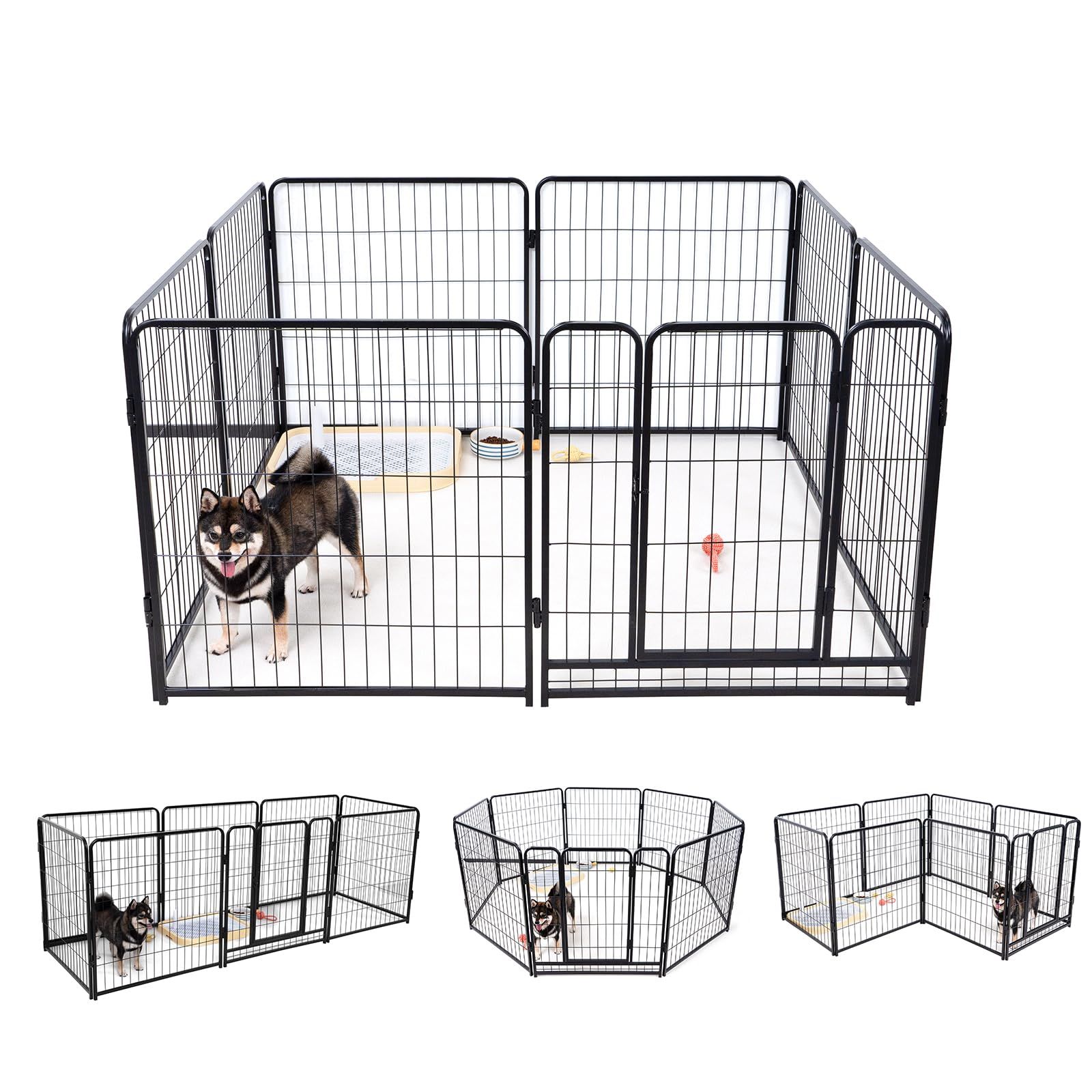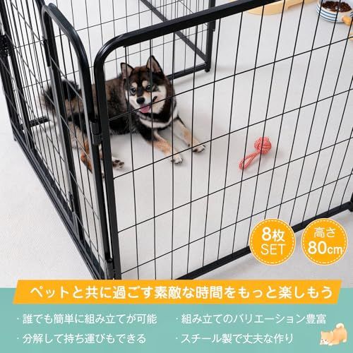 大型犬 サークル スチール製 ペットサークル 犬用サークル 犬用フェンス 犬 ケージ ペットケージ 大型 60/80/98CM 室内室外兼用 折り畳み式 組立簡単 複数連結可能 (ブラック, 高さ80CM, 8枚)n