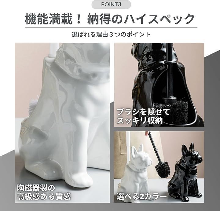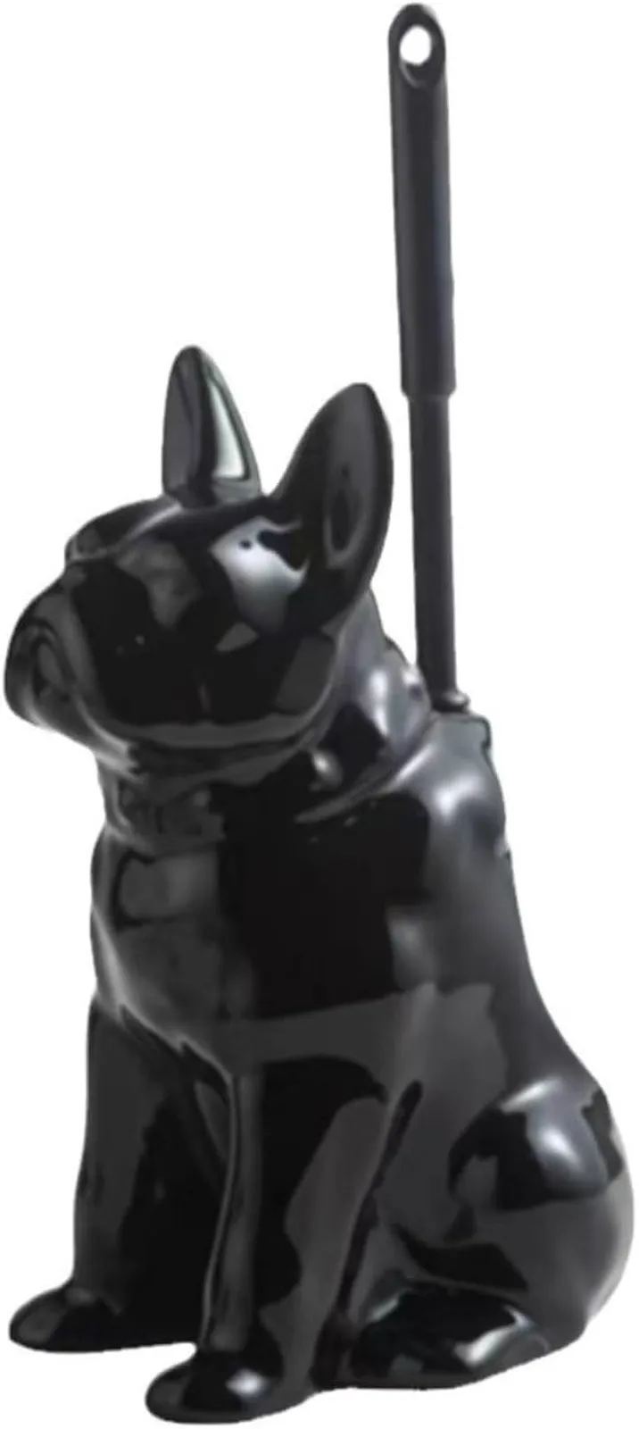 Maatsu トイレブラシ フレンチブルドッグ 収納 グッズ トイレ掃除 ケース付き インテリア (ブラック)