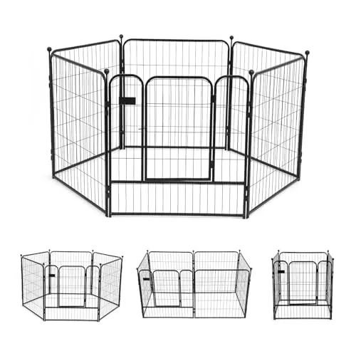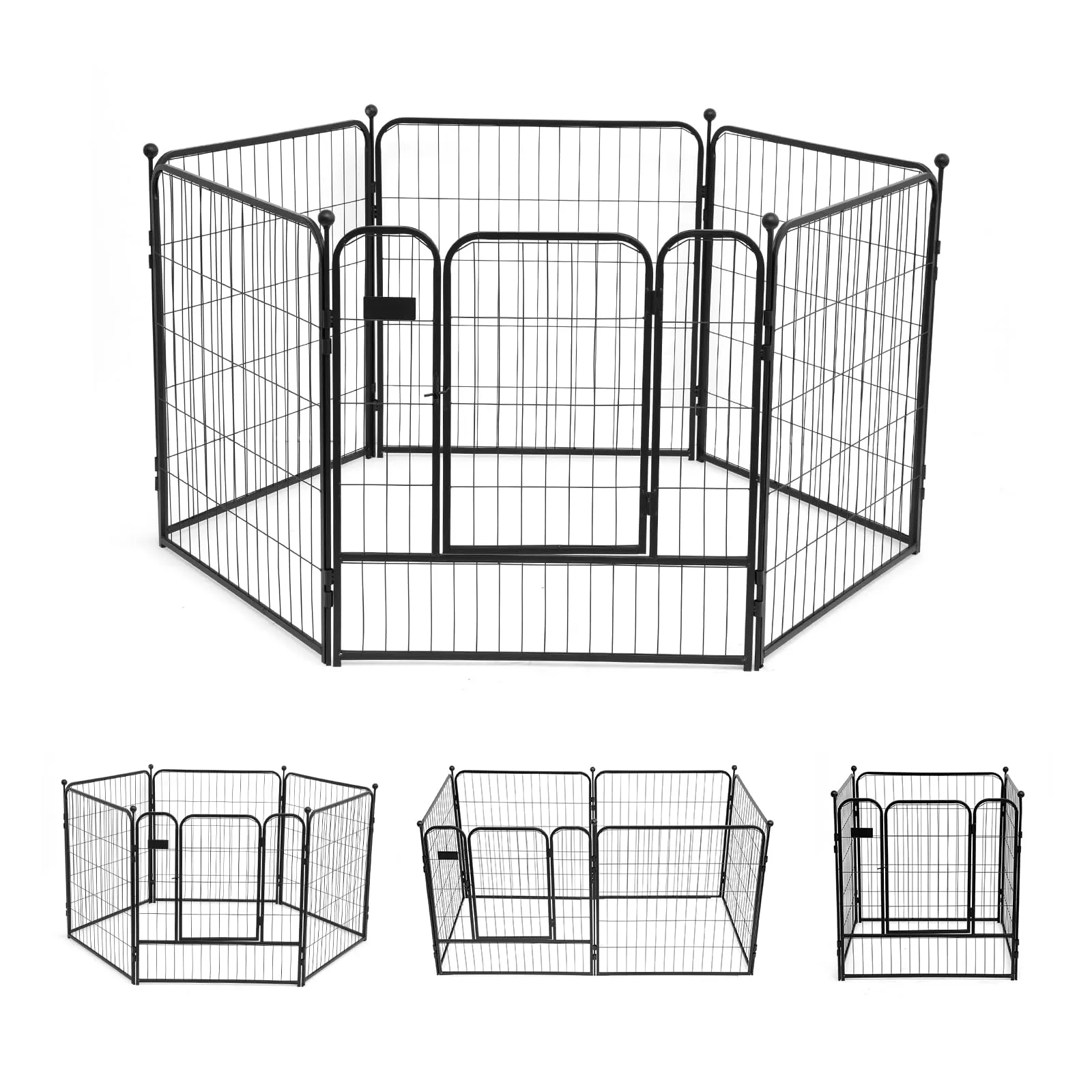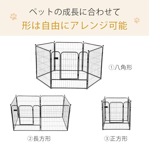 PETTOM 犬 サークル ペットフェンス ペットケージ 犬 ゲージ 犬 サークル折りたたみ サークル 室内 中大型犬用 スチール製 コンパクト 8枚組 高さ80cm 高さ100cm 室内外兼用 折り畳み式 組立簡単 軽量 持ち運び便利 (高さ80cm-六枚n