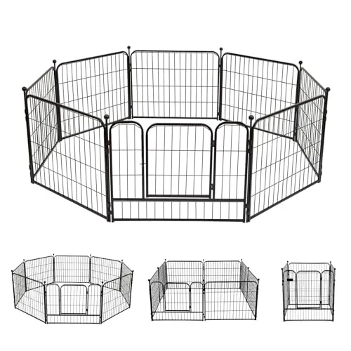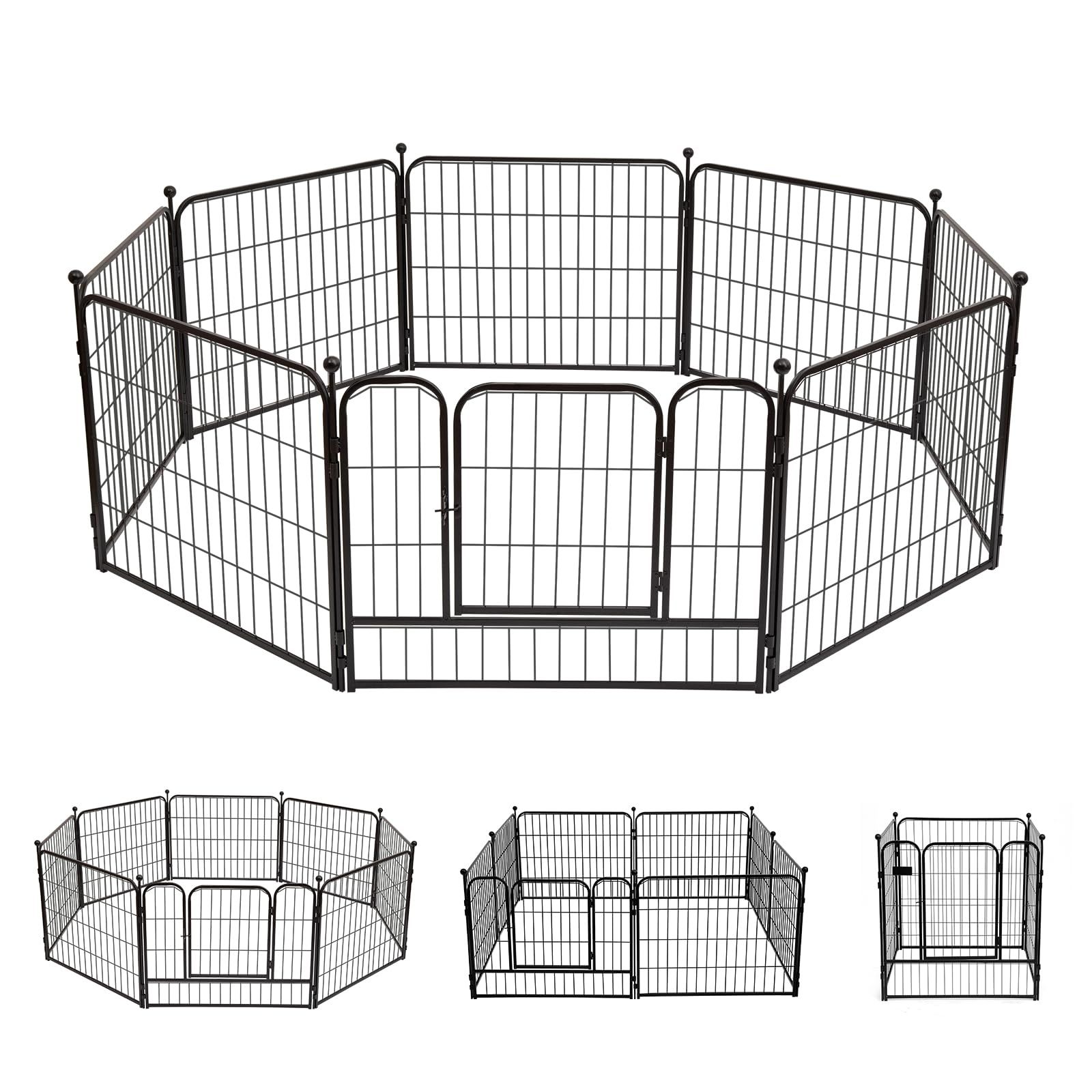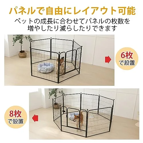 PETTOM 犬 サークル ペットフェンス ペットケージ 犬 ゲージ 犬 サークル折りたたみ サークル 室内 中大型犬用 スチール製 コンパクト 8枚組 高さ80cm 高さ100cm 室内外兼用 折り畳み式 組立簡単 軽量 持ち運び便利 (高さ60cm-八枚n