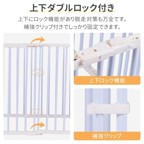 上下ダブルロック機能で脱走防止対策もばっちり。ジョイント式なので、使わない時は重ねてコンパクトに収納可能です。