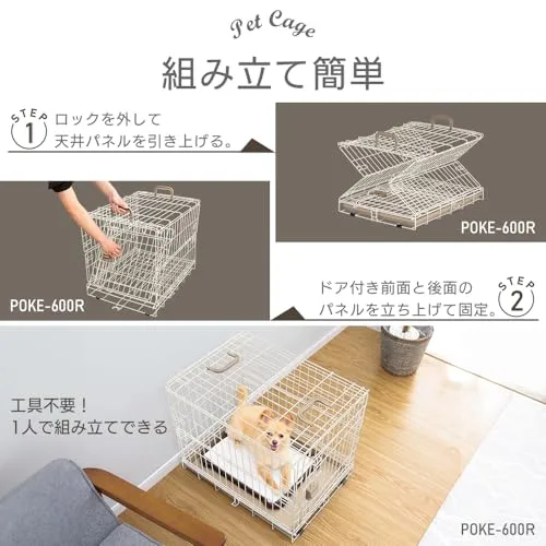 アイリスプラザ 折りたたみケージ 犬 猫 防災 ライトナチュラル 超小型犬・猫用 幅34×奥行47×高さ38.5cm POKE-450Rn