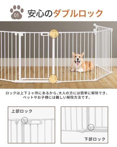 【可変式デザイン】スペースに合わせてパネルを活かして、長方型、正方型、L字型などに変更できます。ペットに窮屈な思いをさせる事なく、日常のトイレ訓練やハウストレーニングに便利なペットサークルです。
