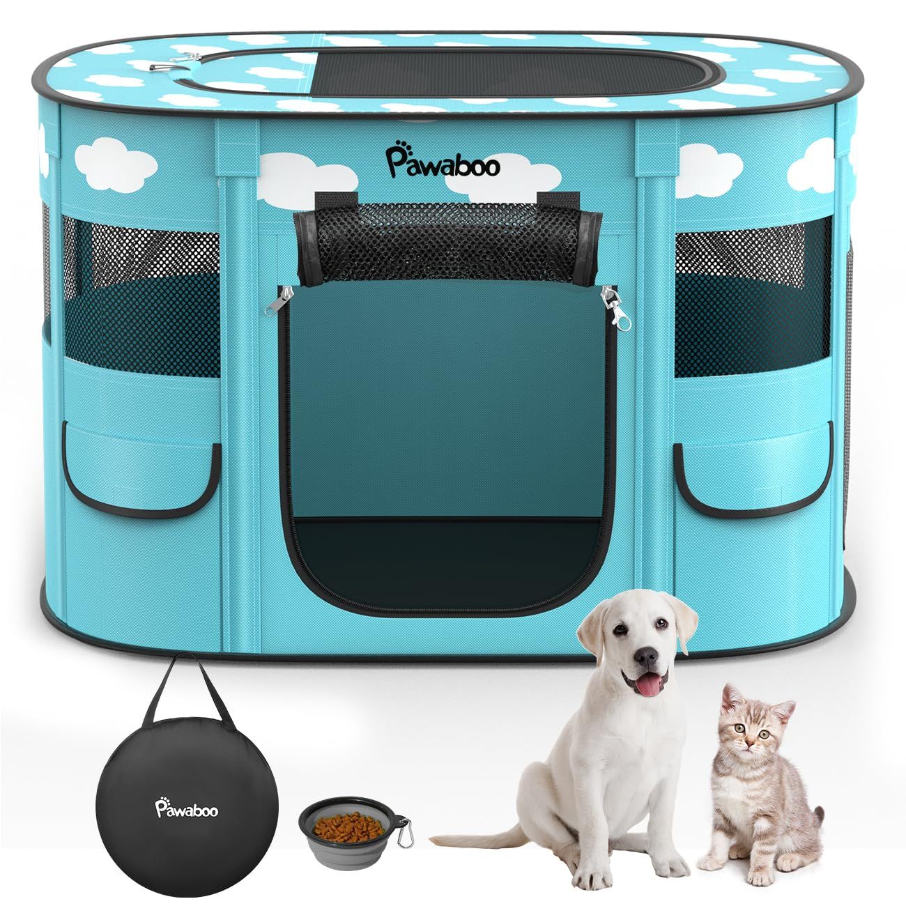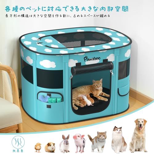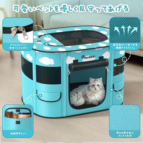 ペットサークル 折りたたみ Pawaboo 犬 室内 ペット ケージ メッシュ 扉付き 犬用 小型犬 組立簡単 防水 長方形 キャットサークル 引き裂けにくい ペットフェンス ファスナー式 出入り便利 犬 屋外サークル 哺乳期 分娩室 動物フレンドルーム うn