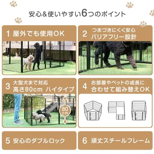 【スタッフのおすすめポイント!】 ・シニア犬も安心!段差が小さいバリアフリー設計 ・連結棒を使用すれば屋外でも使用OK ・大型犬でも安心のハイタイプ 高さ80cm ・お部屋やペットの成長に合わせて組み替え可能 ・頑丈なスチールフレーム ・安心のダブルロック扉