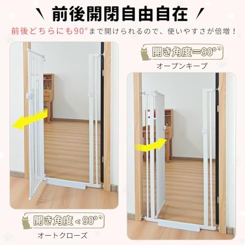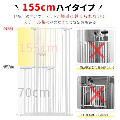 RAKU ペットゲート 猫 高さ155cm 隙間間隔3.5cm ハイタイプ 突っ張り式 取付幅61.5-246cm選択可能 前後90°開閉 オートクローズ 専用スロープ付き 子猫通り抜け防止 穴開け不要 取付簡単 ベビーゲート (ホワイト, 取付け幅76?8n