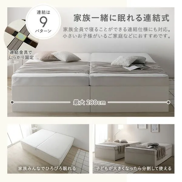 ヘッドレス チェスト ベッド 通常丈ワイドキング 280 D+D ナチュラル ボンネルコイルマットレス付 連結 大容量 引き出し キャスター コンセント すのこベッド 収納ベッド チェストベッド ベッドフレーム 連結ベッド 寝具 インテリア家具
