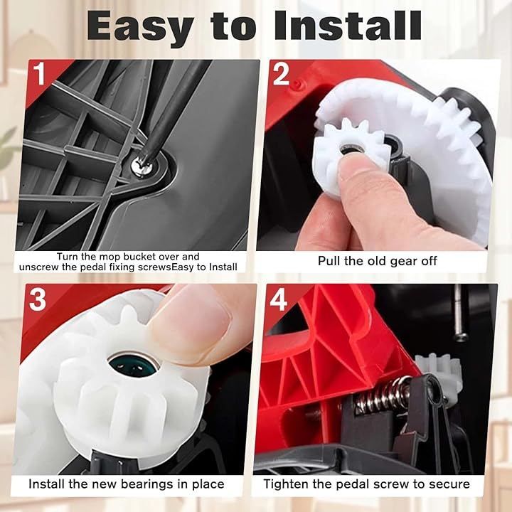 購入前に、ご使用の回転モップバケットの交換用ギアのサイズをよく確認してください