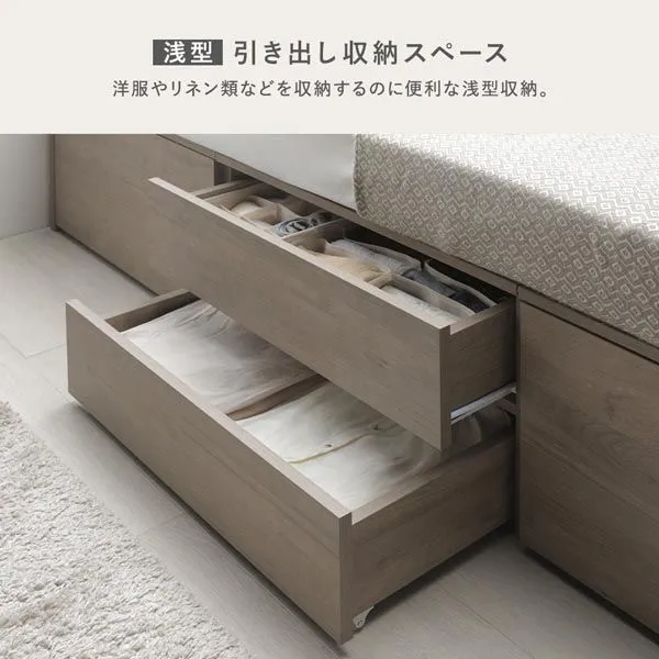 ■耐荷重(約) ショート丈セミシングル/ショート丈シングル/通常丈シングル本体:120kg 通常丈セミダブル本体:180kg 通常丈ダブル本体:200kg 引き出し:各15kg