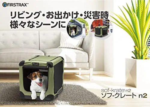 ファーストラックス (FIRSTRAX) ソフクレート n2 カーキ XLサイズ 対応ペット参考体重31.8? (奥行91 x 横幅61W x 高さ69 cm) 3面ドア&メッシュ加工 底面防水仕様 アウトドアや防災対策にも最適 防災製品等推奨品認証 折りたn