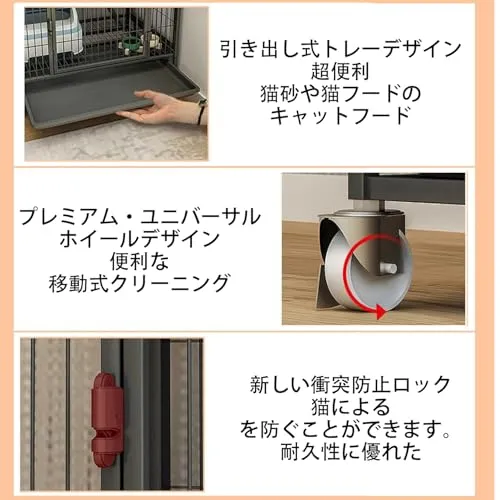 【組立簡単】追加工具不要。組み立ては簡単で、ケージは広々として快適で、掃除もしやすいです。キャスター付き、移動が簡単で、掃除がしやすいように固定できる。 ケージは取り外し可能で、持ち運びやコンパクトな収納にも便利です。様々なペット用品を入れます。