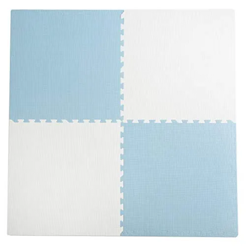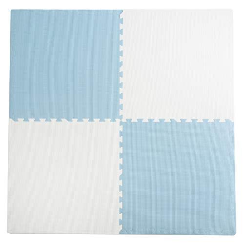 タンスのゲン ジョイントマット 1級防音 大判59cm 厚み10mm 6畳用 32枚組 防音 保温性 床暖房対応 ノンホルムアルデヒド 赤ちゃん プレイマット フロアマット サイドパーツ付き ブルー×オフホワイト 18700001 (79291)n