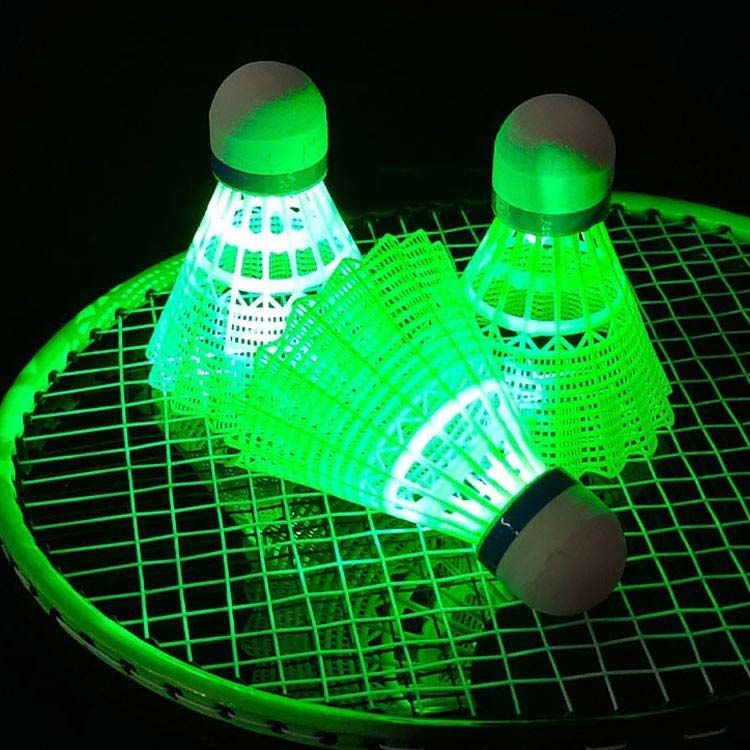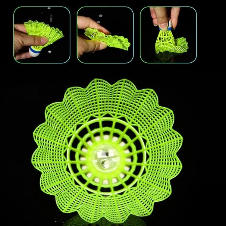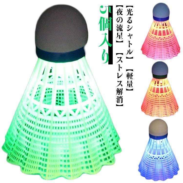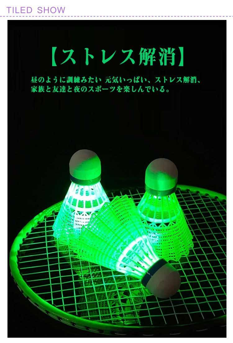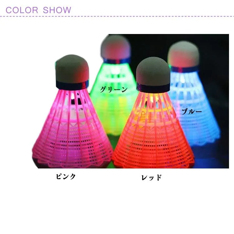 【光るシャトル】 LEDライト付き、夕方や夜に光らせて使うとすごくキレイで楽しめます!電池が切れたとき、通常のバドミントンとして使用することができます。 (連続点灯:約48時間)