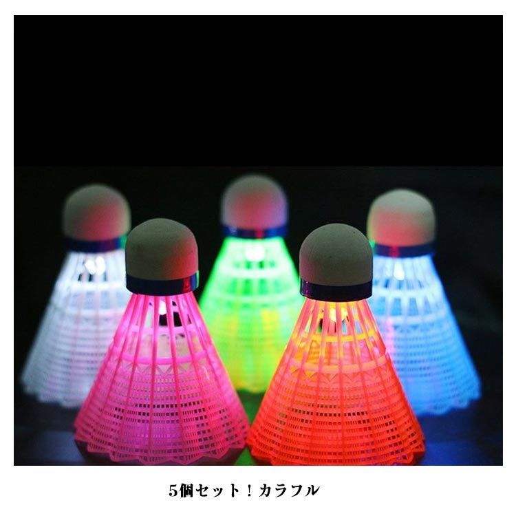 LEDバドミントン 光るシャトル 夜間訓練 5個入り ナイロンボール 軽量 ストレス解消 ダイエット運動 夜間に見やすい 野外活動 ビーチゲーム 練習用 トレーニング 屋内 屋外 スポーツ 送料無料#bon3387