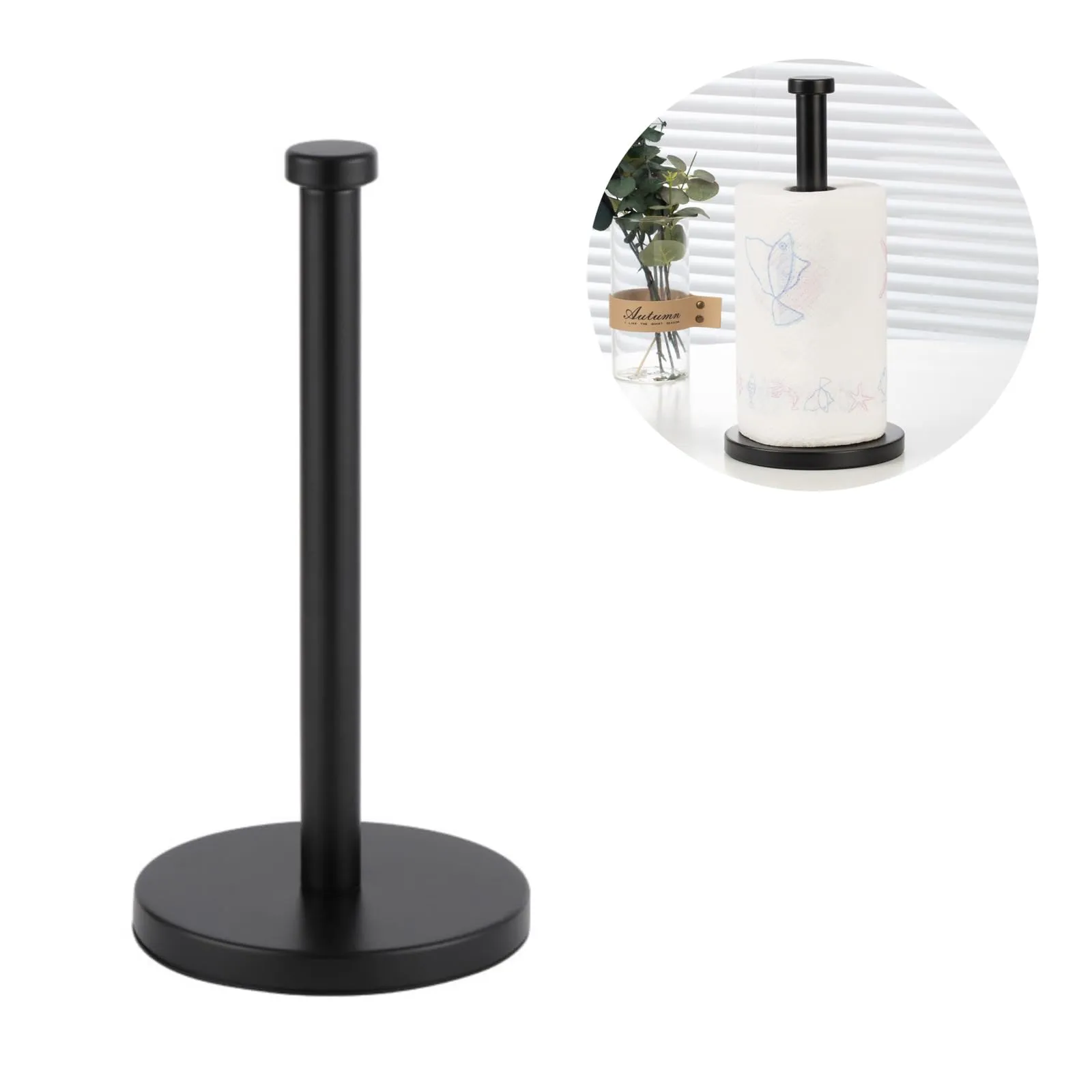 KWQKEMキッチンペーパーホルダー キッチンペーパースタンドペーパータオル ホルダー 片手で切れる ロールホルダー 滑り止め付 ステンレス製 おしゃれ キッチン用品 ブラック