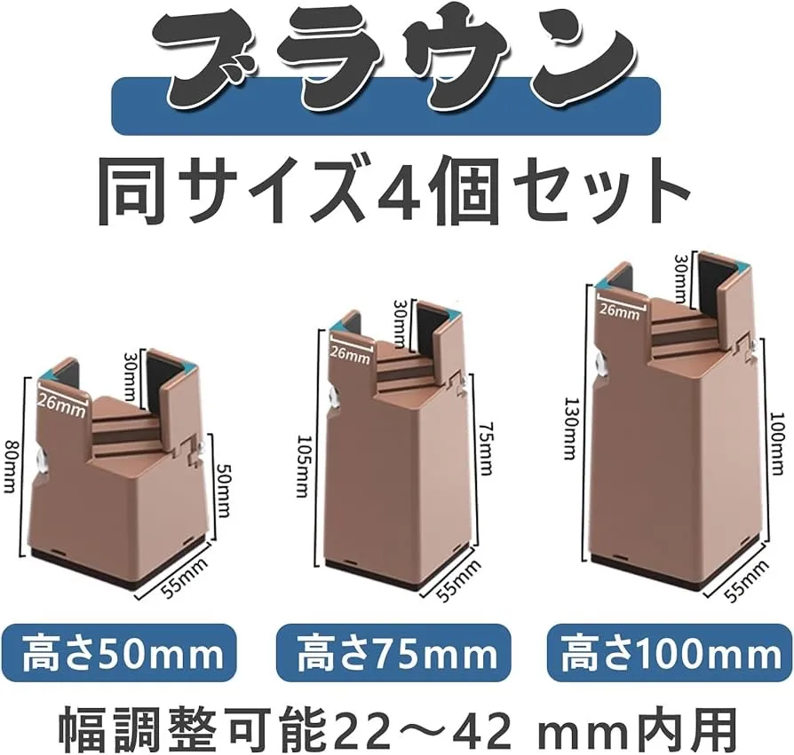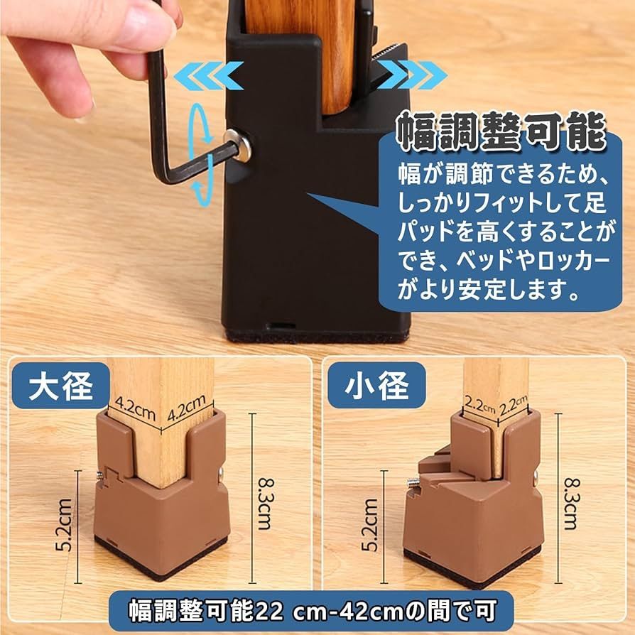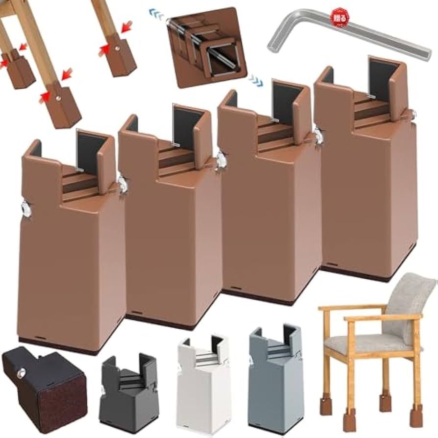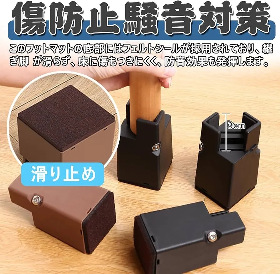 テーブル 脚 継ぎ足し 高さ調整 継ぎ脚 4個セット こたつ 継ぎ足 ベッド テーブル脚台 高さを上げる 机 座椅子 ソファーの高さ調節 幅調節可能 取り付け簡単 リビング 寝室 家具 高さ調整器具 耐荷重 丸/角脚兼用 家具脚に対応 便利グッズ 六角レンチ付