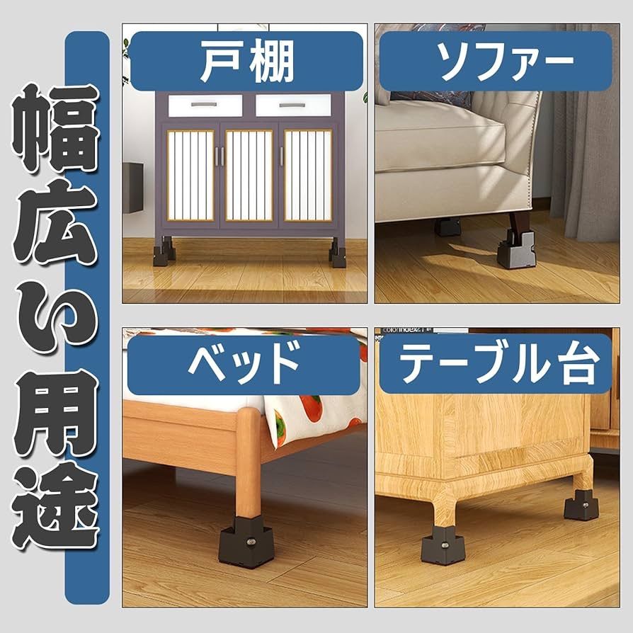 【幅広い用途】家具の丸型、角型に関係なく使用できます。テーブル 、ベッド、デスク、椅子など、様々な家具に適用できます。低いソファやベッドに足継ぎ足しを取り付けて、お掃除ロボットが自由に出入りできます。