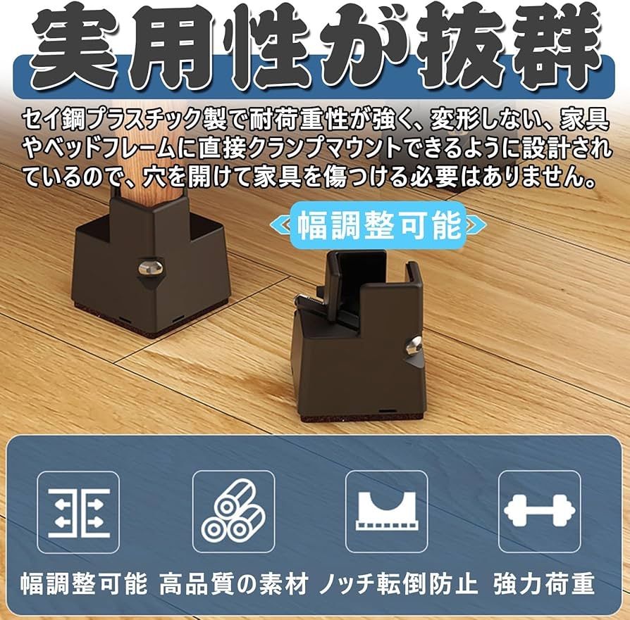 【高さ増加デザイン】家具の高さを調節できる継脚は瞬時に家具を持ち上げることができます。高さを変えることで、収納スペースを残すだけでなく、清潔な環境を保ち、快適な生活を送ることができます。