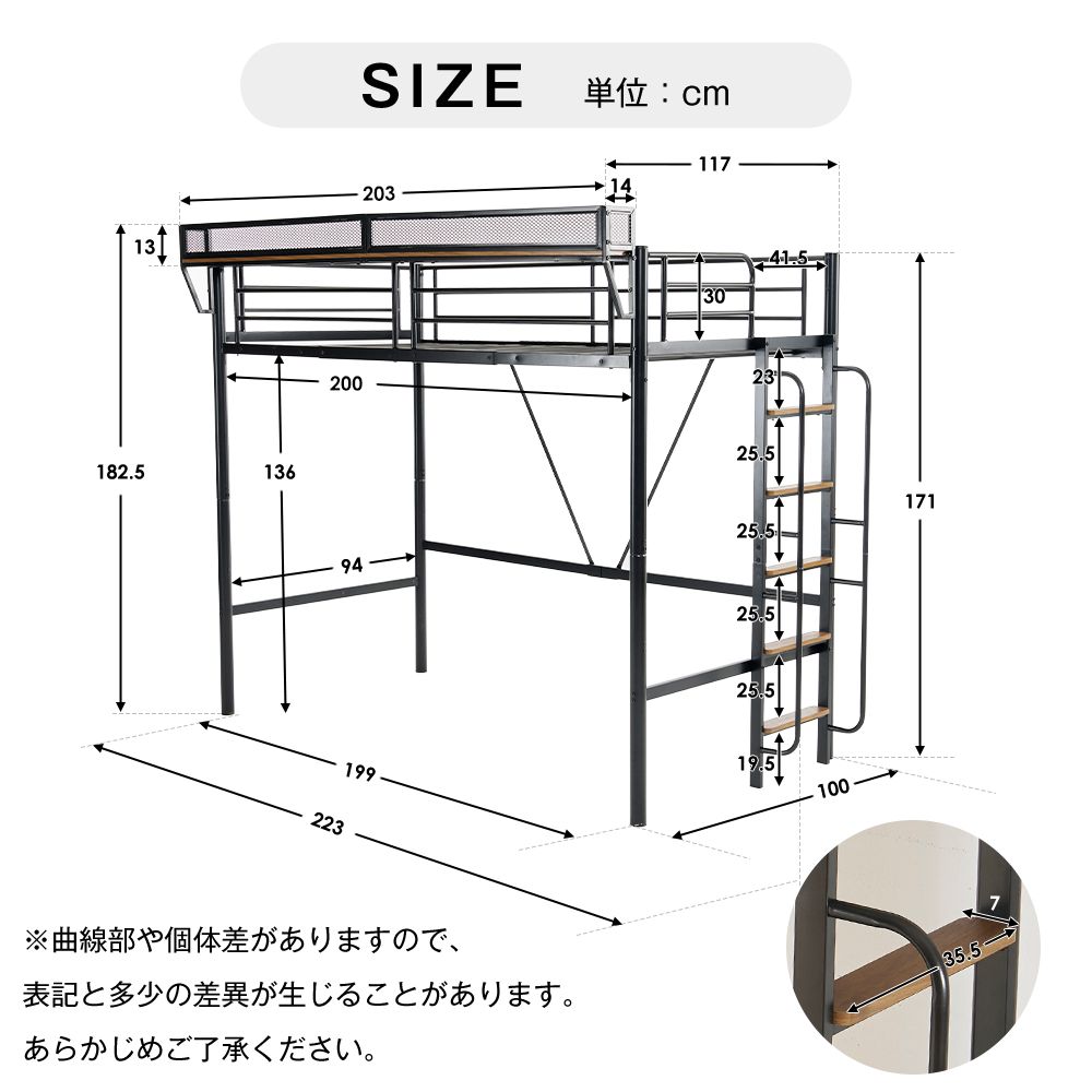 【安心設計で、いつでも安全・快適な使用感を】細部にわたる安全対策が施されており、さまざまな安心設計で、家族みんなが安心して使えるLOFTベッドです。ハイガード 横ガードの高さ:30cm 寝返りによる転落を防止します。