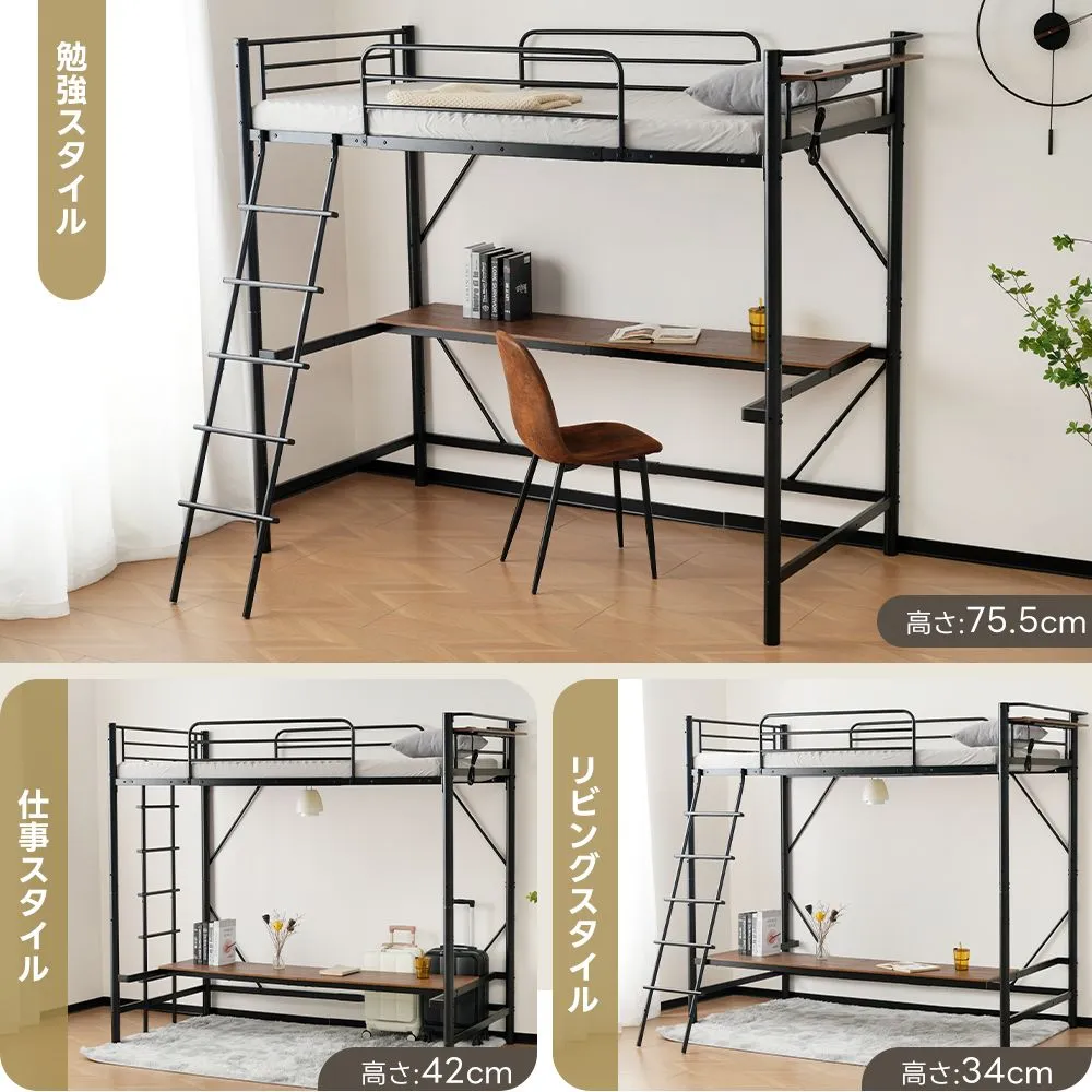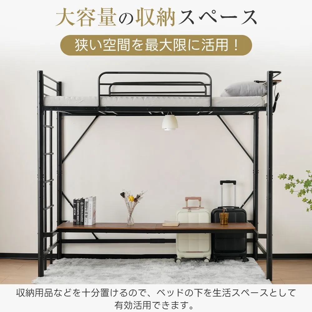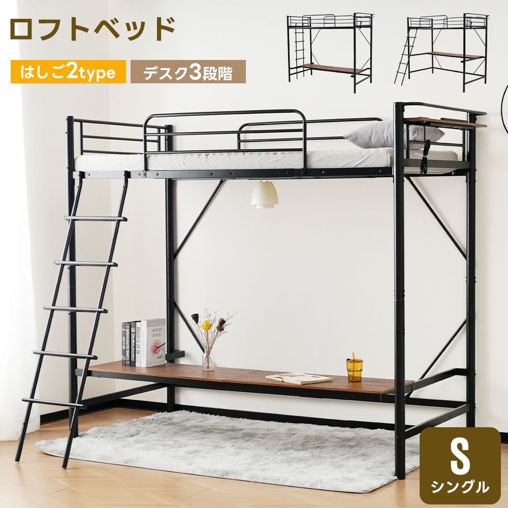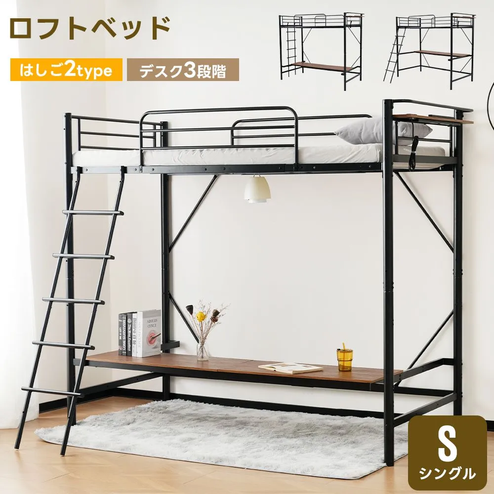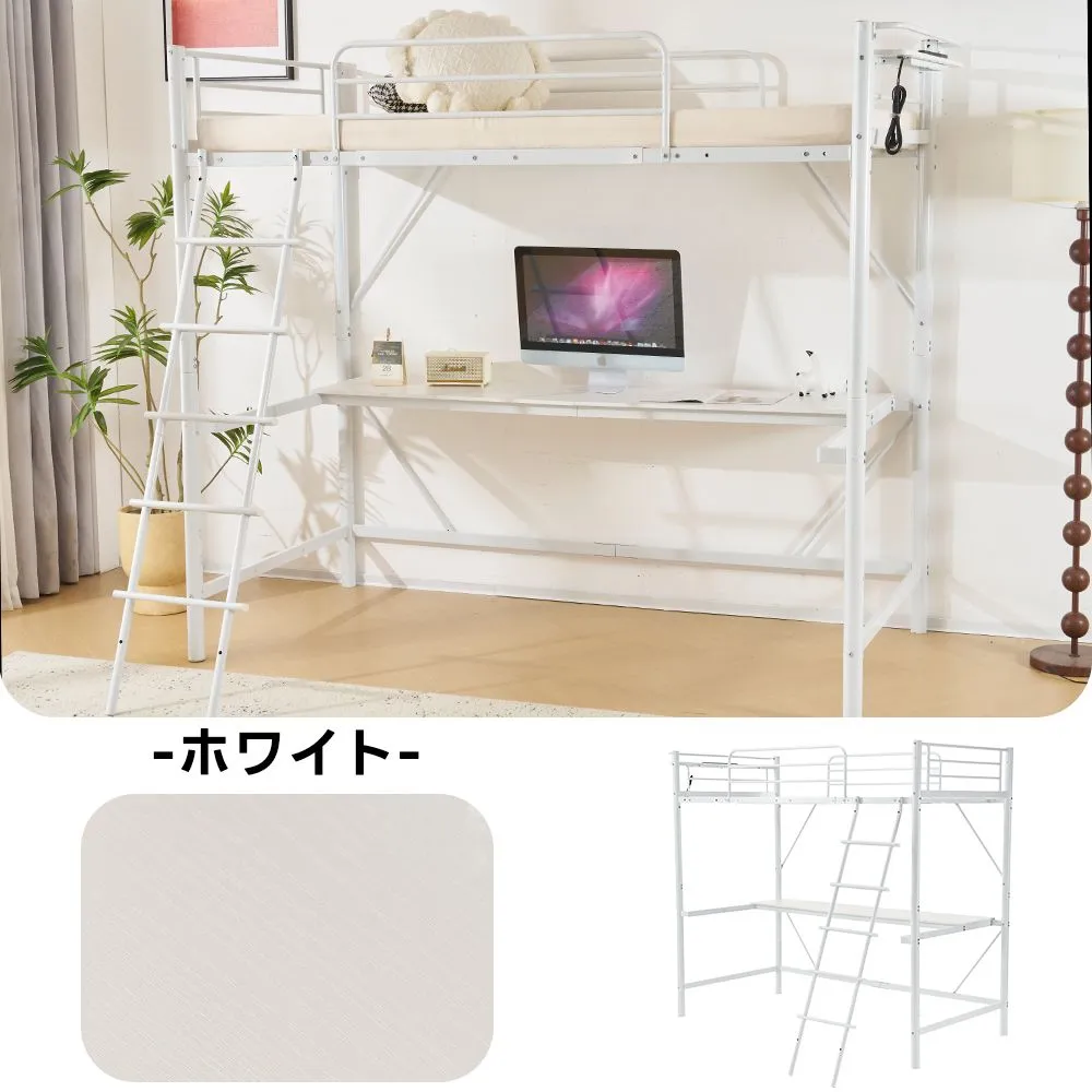 システムベッド ロフトベッド パイプベッド シングル コンセント付き デスク付き デスク移動可能 2タイプ はしご 子供ベッド 大人ベッド 一人暮らし 子供部屋 スチール 耐震 ベッド
