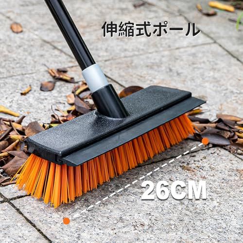 デッキブラシ 水切りワイパー付き タイルブラシ 幅26cm 長さ調節可 全長127cm 厨房 廊下 玄関 庭 ベランダ 浴室に適用 スチール柄 硬いブラシ 掃除用品 風呂掃除 コンクリート床面掃除