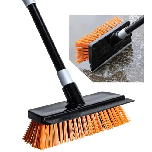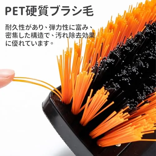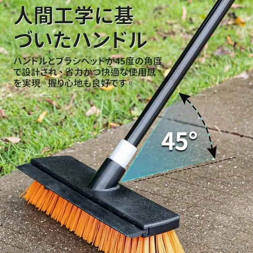【耐久性に優れた設計】デッキブラシの強度と耐久性を確保するために、柄はねじ込み式のデザインを使って、さらに、頑丈なスチール柄を採用します。ブラシは耐水に優れたPET素材を使われて、硬いブラシで頑固な汚れを強力除去し、高耐久で清掃効率アップ!