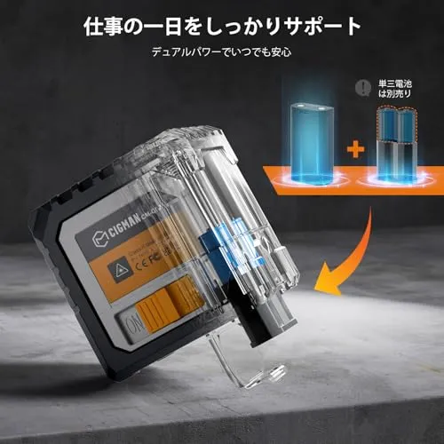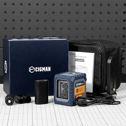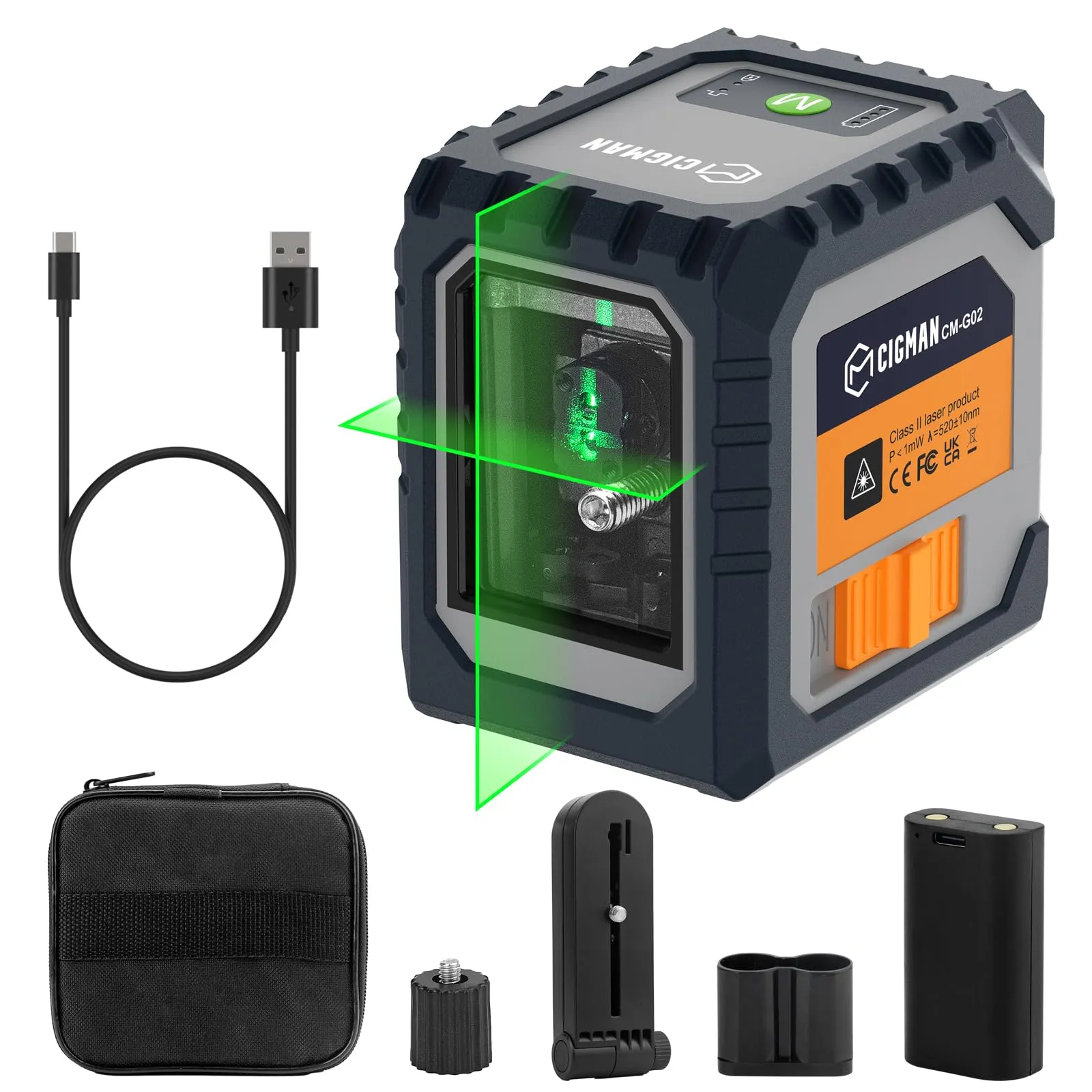 CIGMAN レーザー墨出し器 ミニ型 クロスラインレーザー USB-C充電式電池 モード切り替え不可 自動/手動水平調整 磁気サポート30Mの作業距離 IP54 収納バック付き 日本語取扱説明書 CM-G02