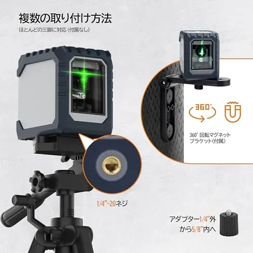 【小型軽量】コンパクト設計になっており、持ち運びは非常に便利です。充電式バッテリーは最大5時間の作業時間を提供します。ご注意:測定距離は光の影響を受けます。明るい環境では最大7メートル、暗い環境では最大30メートルまで測定可能です。屋外での使用は、パルスモードでGIGMANレーザー受光器との作業をお勧めします。