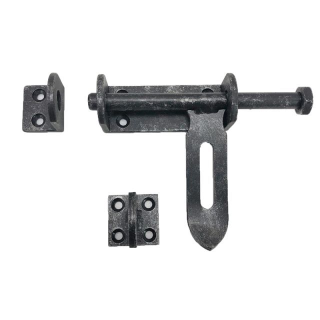 閂(カンヌキ)・ゲートラッチ・打掛【#3505R】||門扉ドア用金物|ロートアイアン製(シルバーブラック)
