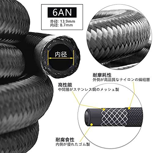 AN6 ナイロン ホースメッシュ 燃料ホース 3層構造 耐圧 耐熱 耐油 耐腐食性 車用オイルクーラー オイル 燃料 ガソリンホース フューエルホース 長さ3M