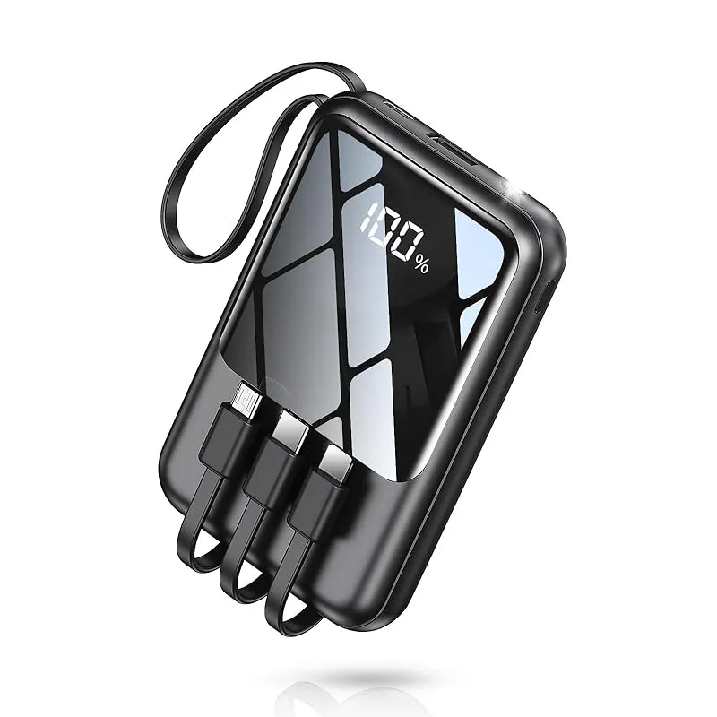 【22000mAh大容量・4本ケーブル一体型・急速充電】超軽量 小型 モバイルバッテリー 4台同時に充電 携帯充電器 USB-Type C入出力ポート LEDディスプレイ搭載 スマホ充電器 コンパクト 持ち運び便利 機内持込可能 L 製造元:HGGH 商品番号:N13 色:ブラック