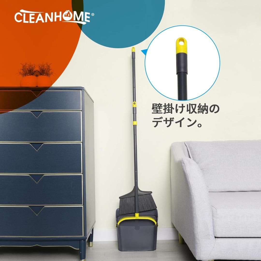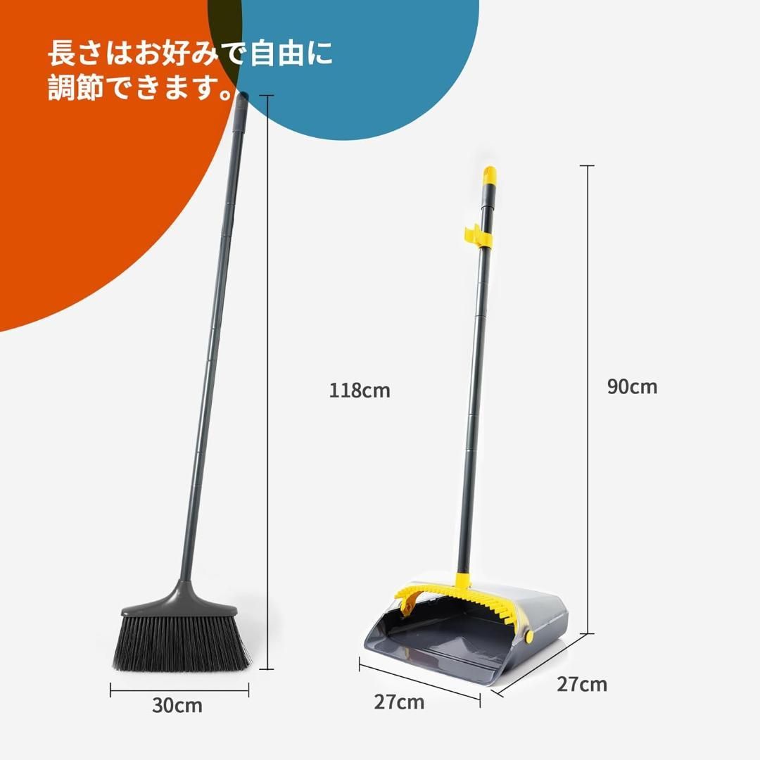 ほうきちりとりセット 立て式 収納 4段ポール 長さ調節 ブラック278L828