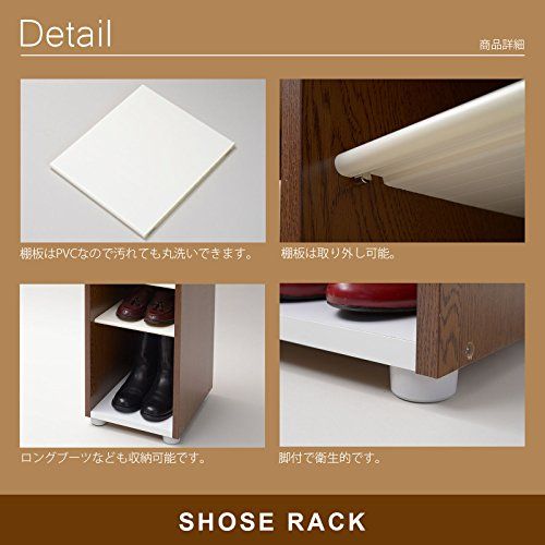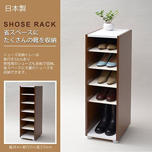 【特徴】 樹脂製シューズトレーは取り外し可能で、ブーツなども収納可能 [外形寸法] 幅28.4×奥行35×高さ93cm 本体重量:7.5kg 収納部内寸(1か所)幅25×奥行32×高さ14cm 棚板サイズ:幅25×奥行29cm 棚板枚数:5枚 耐荷重:棚板1枚あたり3kg [材質]本体:プリント化粧繊維板 [材質]地板・中間板:ポリエステル化粧繊維板 [材質]棚板:PVC 組立式 サイズ:幅28.4×奥行35×高さ93cm 生産国:日本 材質・本体:プリント化粧繊維板 材質・地板・中間板:ポリエステル化粧繊維板 材質・棚板:PVC 収納部内寸(1か所):幅25×奥行32×高さ14cm 棚板サイズ:幅25×奥行29cm 最後までご確認頂き誠にありがとうございました。 上記をご確認頂き、ご購入いただけましたら幸いです。 何かご不明な点がございましたらお気軽にメッセージからお問い合わせ下さい。