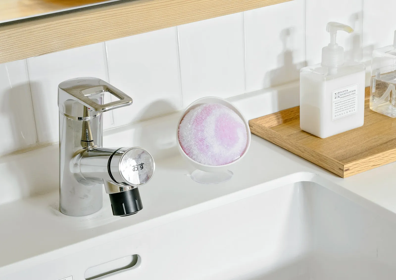 山崎産業 スポンジ 洗面台 バスボンくん スッキリポンポン ケース付き 抗菌 ピンク 178803 [ピンク] [02:ケース付き]