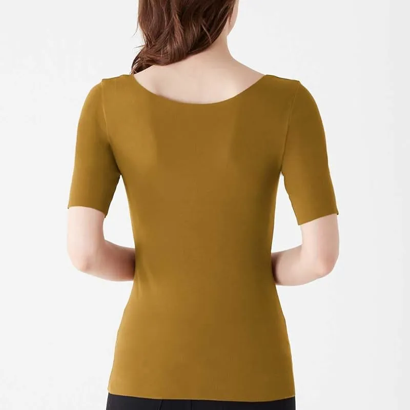 インナー 5分袖 リブインナー【綿混 オーガニックコットン】 キレイラボ KIREILABO フィッテ fitte KB5048